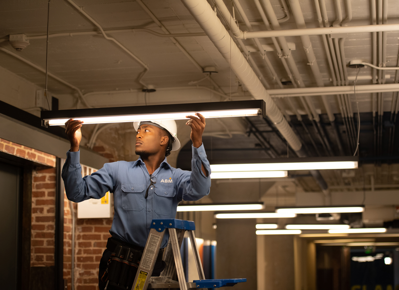 ABM delivers a range of planned and proactive lighting maintenance services, helping you achieve energy efficiency, LEED, and other sustainability certifications. We maintain your lighting infrastructure, so that you can focus on operational performance.